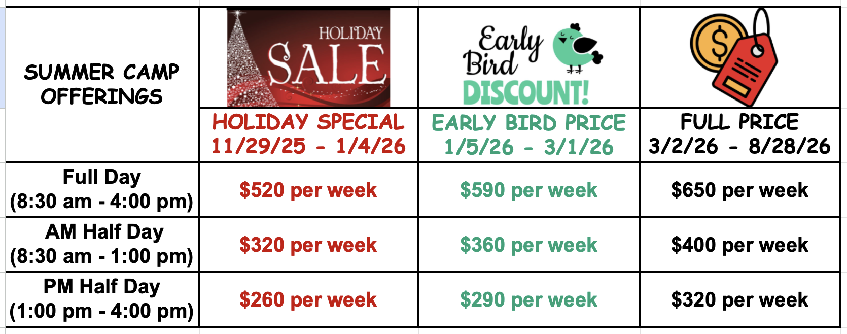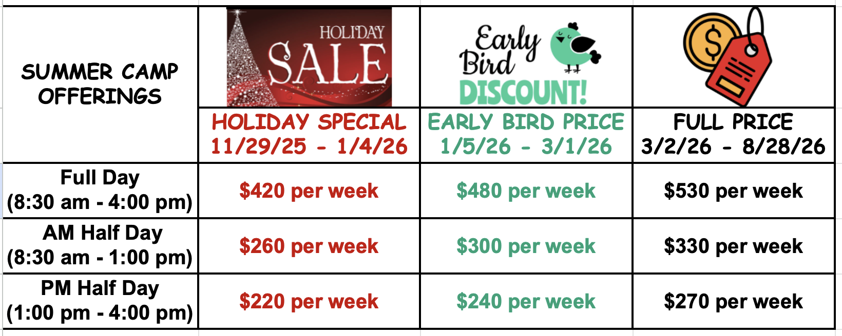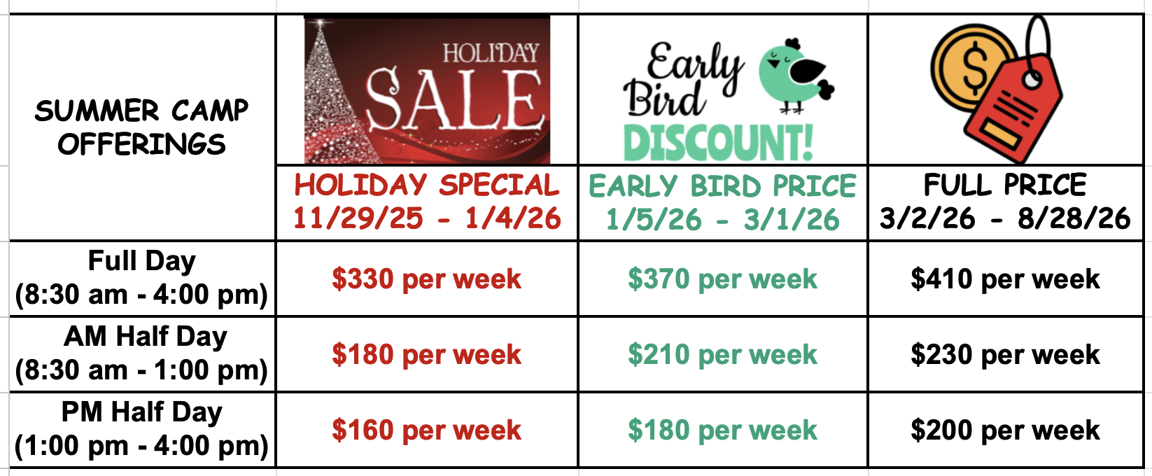 *Please note, 4-year-olds are only permitted to participate in half-day camps.