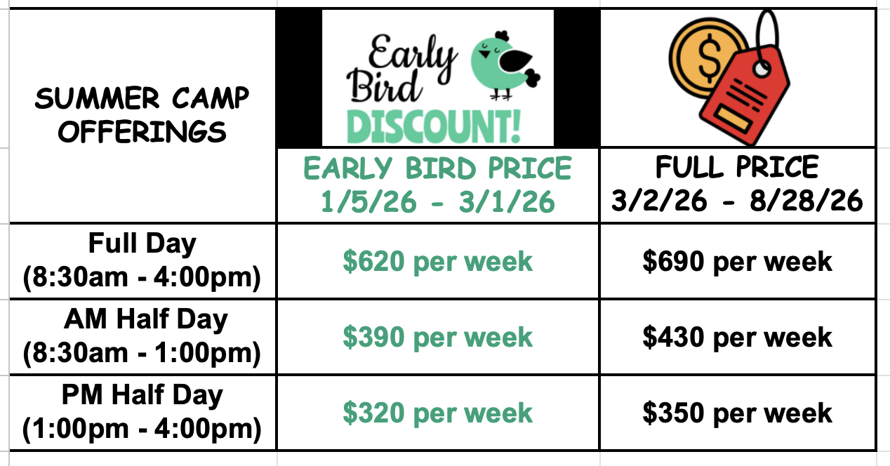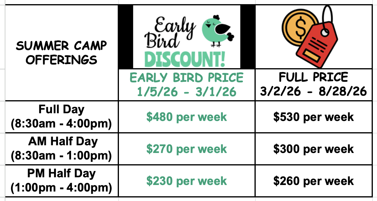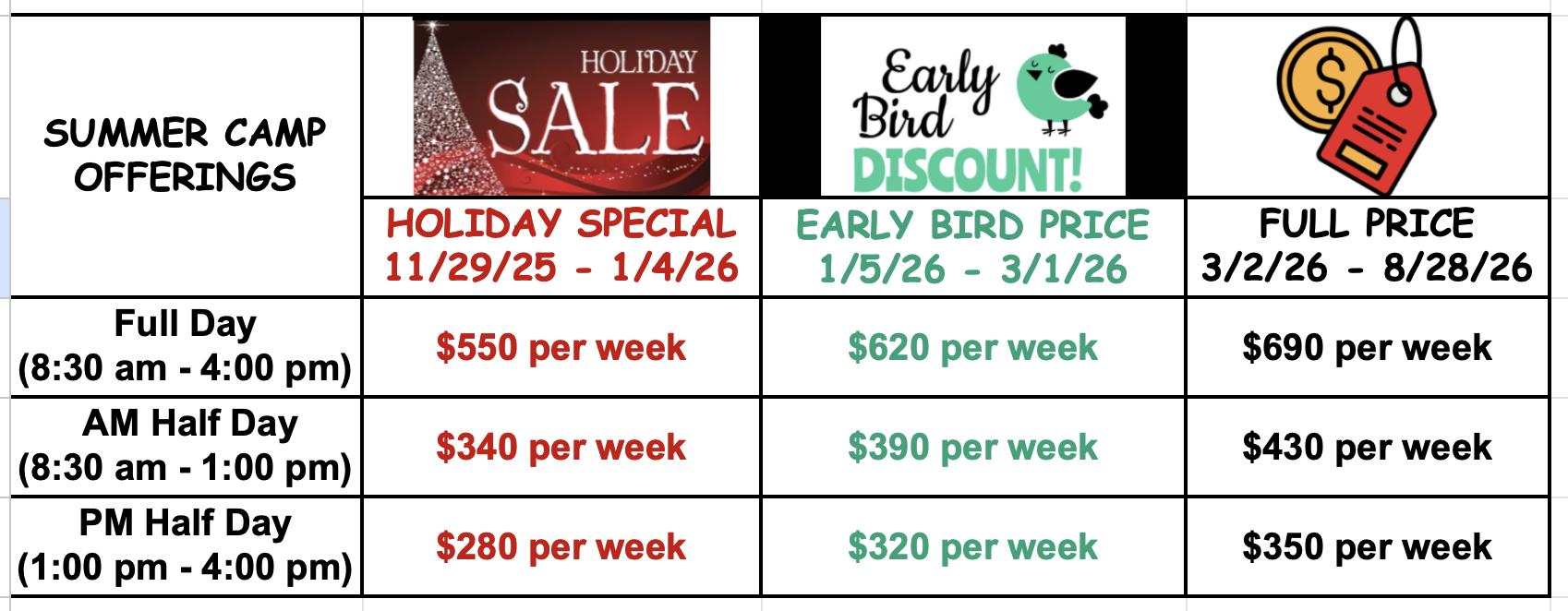 *Please note, 4-year-olds are only permitted to participate in half-day camps.